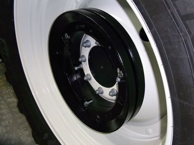 Le lestage par les roues laisse toute liberté d’attelage d’autres équipements à l’arrière du tracteur.